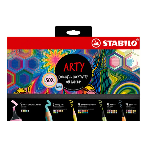 El Set Stabilo Arty Creative Pastel x50 es el pack definitivo para artistas, estudiantes y amantes de la papelería creativa. Con 50 piezas en tonos pastel, este kit reúne lo mejor de la marca Stabilo en un solo estuche, combinando calidad, durabilidad y versatilidad para que tus ideas cobren vida con estilo.